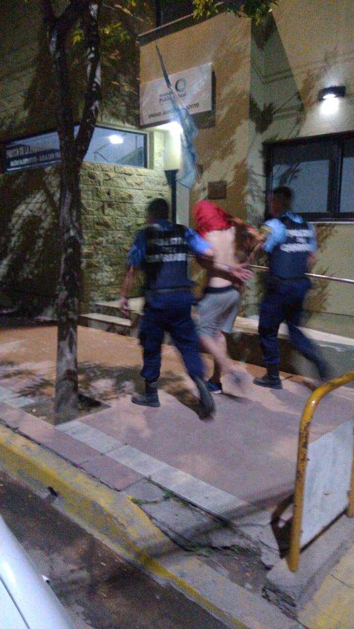 siendo la hora indicada ingresa un llamado solicitando un móvil con urgencia a calle Dora Rodriguez 1705 manifestando que un masculino se encontraría violentando una puerta de chapa color gris con ingreso desde el patio, por lo que el personal policial automáticamente se llega al lugar constatando que en el interior del domicilio precisamente en una habitación habría un masculino delgado de unos 1 metro y 80 centímetros aproximados de altura quien vestía una Bermuda de color crema y un remera de colo rojo, donde se le da la voz de alto haciendo caso omiso este se trenza en lucha con el personal policial procediendo a la aprehensión del mismo, donde entre sus prendas tenia una suma total de $ 3.900 (tres mil novecientos) pesos en moneda argentina en billetes de 100 (cien) propiedad de dueña de casa. siendo trasladado a posterior a sede policial un Hombre de 27 años de edad domiciliado en nuestra ciudad y de porfesion pintor.Se hace entrega del procedimiento en la unidad judicial quedando alojado el señor a disposicion de la FISCALIA DE INSTRUCCION DE ARROYITO por el delito de ROBO CALIFICADO EN GRADO DE TENTATIVA.