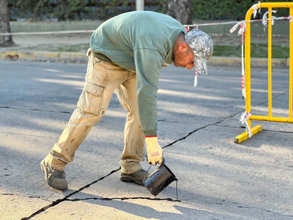 En promedio, se están interviniendo entre 1.200 y 1.500 metros semanales, con tareas que incluyen la realización de juntas en pavimento y bacheos en diversas arterias.