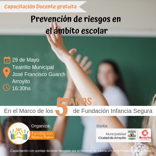 la Fundación Infancia Segura llevara a cabo la capacitación " Prevención de Accidentes en el Ámbito Escolar "