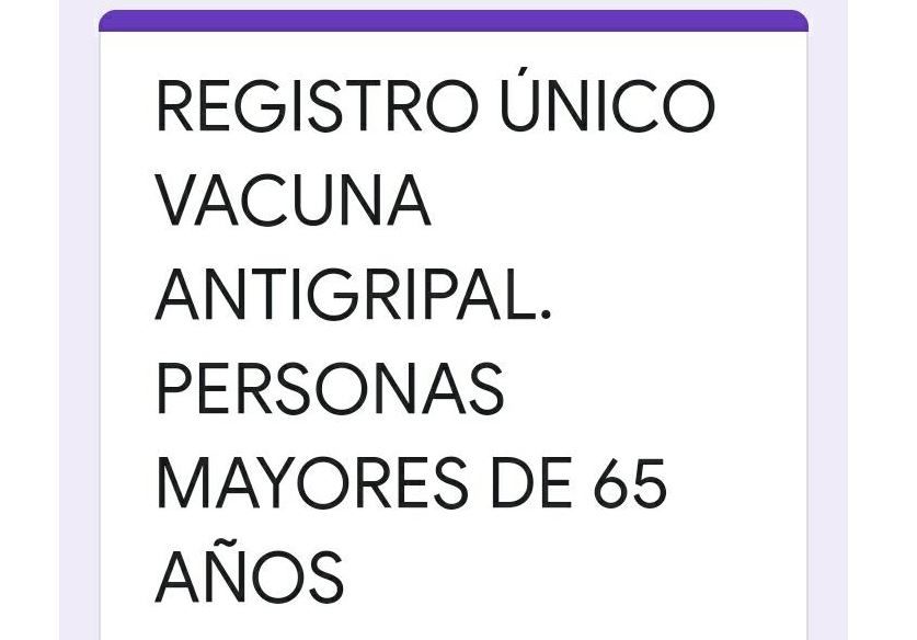 Registro de mayores de 65 años para recibir la Vacuna Antigripal