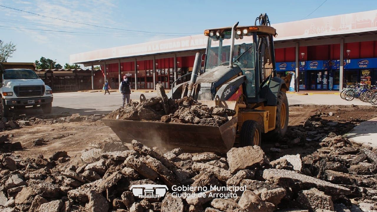 El Gobierno Municipal se encuentra trabajando en la mejora del acceso a la Terminal de Ómnibus, reemplazando la vieja plataforma de asfalto por un nuevo piso de hormigón.
