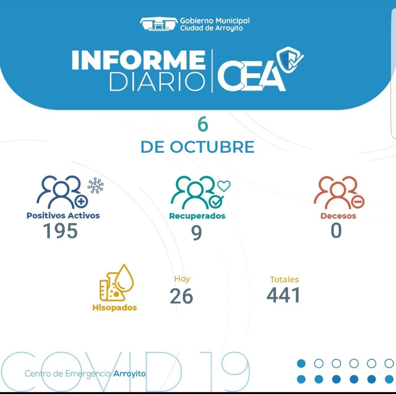 21 Nuevos casos de COVID-19 Positivo en Arroyito, suman 195 activos, 2 personas mas recuperadas.