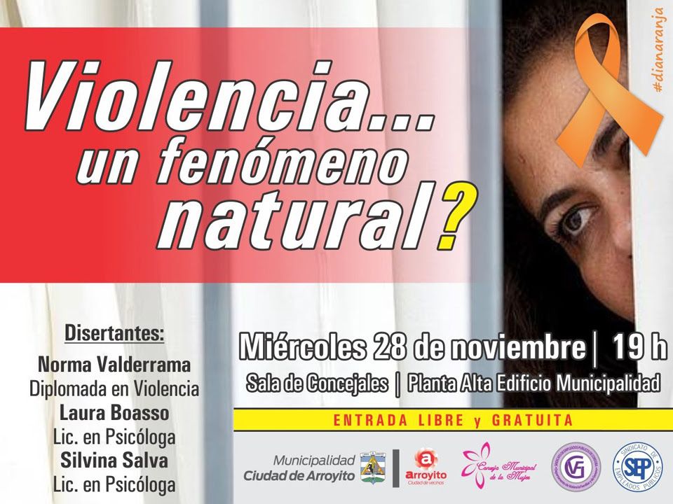 Las mencionada charla "Violencia... un fenómeno Natural? estará enmarcada en el Día Naranja (Día Internacional de la Eliminación de la Violencia contra la Mujer), que se conmemora el 25 de Noviembre de cada año, para prevenir y concientizar sobre la violencia que se ejerce en las mujeres del mundo y reclamar políticas en todos los países para su erradicación.