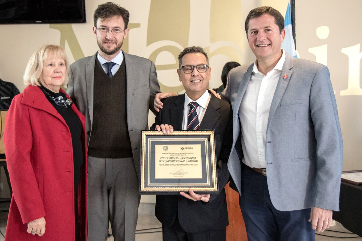 Entonadas las estrofas de himno nacional, escuchados los mensajes de los referentes, entregaron reconocimientos por los 25 años: Sede Judicial Arroyito a la Asociación de Magistrados de la Provincia de Córdoba; del Colegio de Abogados, de la Municipalidad y de la Sede Policial Departamental a la Sede Judicial.