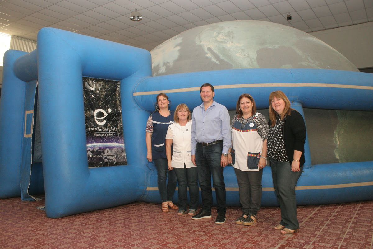Se pensó en brindar a los alumnos de ambas Instituciones un aprendizaje diferente, por ello se contrató este Domo o Carpa inflable en forma semi esférica (Planetario Móvil) que permite simular el universo en y la vida de los dinosaurios en forma alternada, los fenómenos se puede observar directamente sobre las paredes de la carpa.