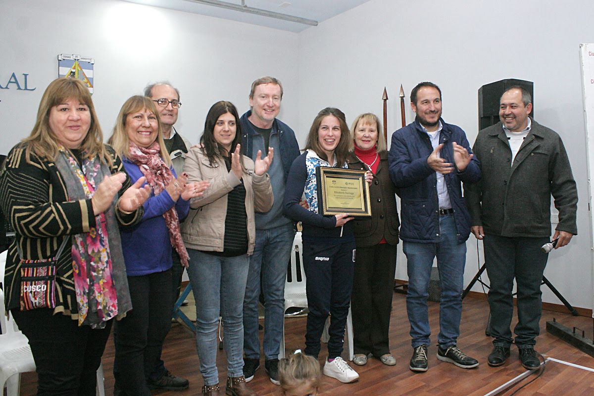 En una noche muy emotiva, acompañada de funcionarios municipales, familiares, amigos, deportistas, dirigentes deportivos, y muchos vecinos, Eli fue recibida en el Auditorio Coral, con los acordes de la banda municipal. Funcionarios municipales, entre ellos la Vice Intendente, Graciela Tristany, el Lic. Ignacio Cabello, Viviana Sam Sam, Marcela Ferreyra, Víctor Dellarossa, Ing. Daniel Lafarina, Lic. Viviana Vercelli y el Director de Deportes, Gustavo Pecchio hicieron entrega en nombre del Intendente, que por cuestiones de agenda no pudo estar presente, de una plaqueta de reconocimiento por su participación y logros obtenidos en Lima 2019.