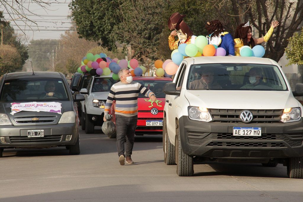 Un festejo distinto, que pidió a los niños que permanezcan en sus casas, se hizo realidad este domingo, con personajes mágicos y mucha música, para entregar en la puerta de los hogares alegría y diversión para las niñas y niños.