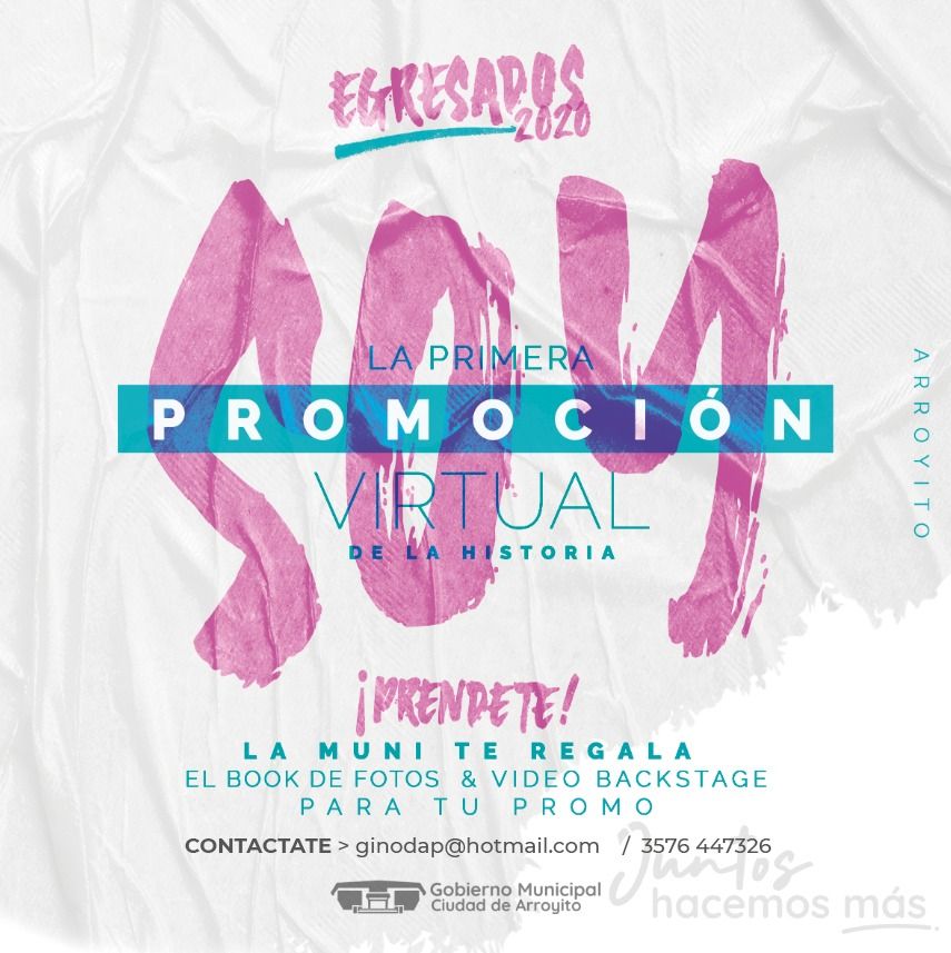 Motivados por el hecho de que este año los Egresados de Sexto o Séptimo año de las Escuelas de Arroyito y Anexos Rurales no han podido celebrar debido a la situación de emergencia sanitaria, el Gobierno Municipal ha decidido regalarle a los Egresados un Book de Fotos y un Video Recuerdo por Curso.