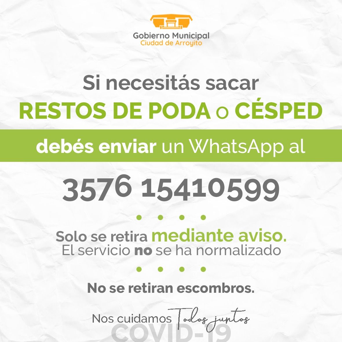 El Gobierno Municipal, a través de la Secretaría de Servicios Públicos, informa que se decidió retomar con guardias mínimas el servicio de recolección domiciliaria de restos poda y césped en casos de máxima necesidad.